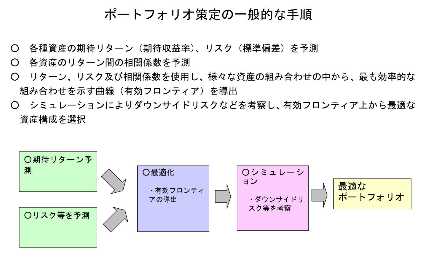 上記の項目の期待リターンは既にコラムの「GPIFを運用事例として議論する③」にて説明済みです。最適ポートフォリオの決定までに、2つのリスクが出てきています。